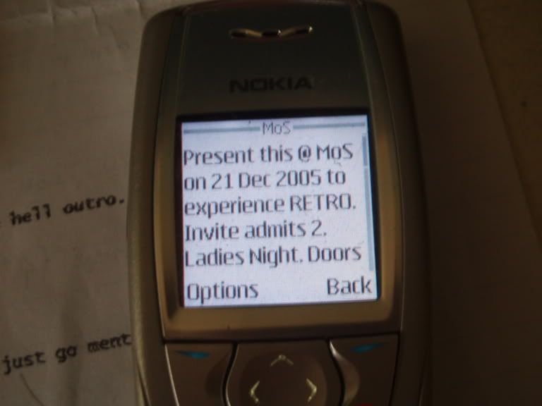 I got invites to MOS but I cannot go because of I have to book in TONIGHT!!! I have yet to check out the place and I really want to see how is it like inside. Ian said the place is damn nice! Damn it! Army su*ks!